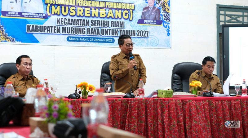 FORUMHUKUM.ID, Puruk Cahu – Bupati Murung Raya (Mura), Heriyus, secara resmi membuka Musyawarah Perencanaan Pembangunan (Musrenbang) tingkat Kecamatan Seribu Riam yang dilaksanakan di Kantor Kecamatan Seribu Riam, Selasa (27/1/2026).