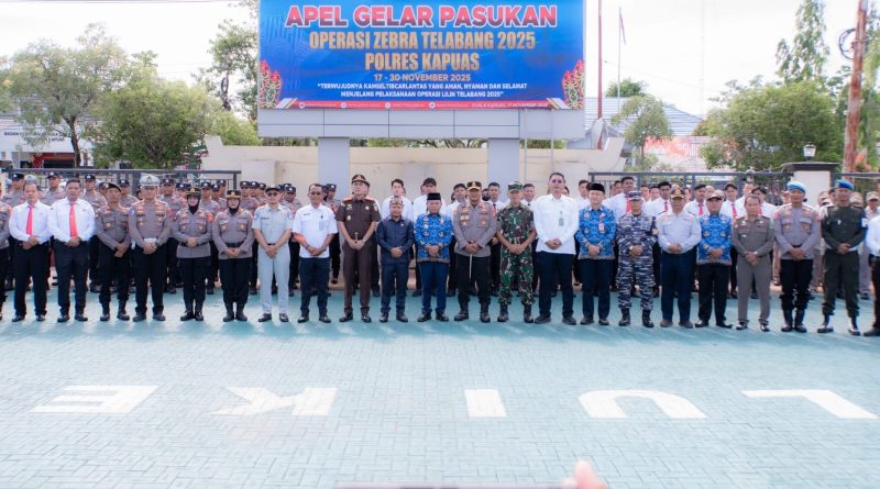 Forum Hukum.id- Kuala Kapuas, Bupati Kapuas, H. M. Wiyatno, menghadiri Apel Gelar Pasukan Operasi Zebra Telabang 2025 yang digelar di halaman Mapolres Kapuas, Senin (17/11/2025). Apel ini dipimpin sekaligus penyampaian amanat oleh Kapolres Kapuas, AKBP Gede Eka Yudharma, yang menandai dimulainya pelaksanaan Operasi Zebra Telabang 2025 di wilayah hukum Kabupaten Kapuas.