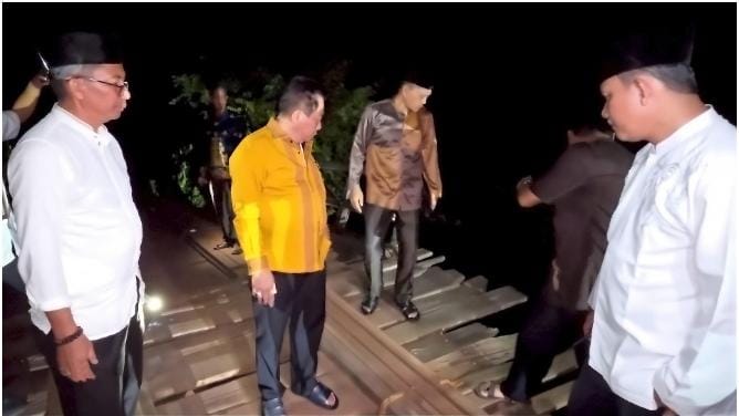 Peninjauan tersebut dilakukan untuk melihat secara langsung kondisi jembatan penghubung antar wilayah tersebut serta memastikan akses transportasi masyarakat tetap dapat digunakan dengan baik.