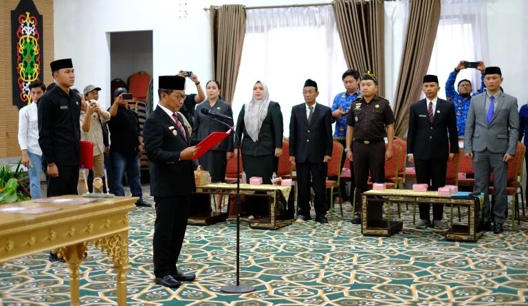 FOTUMHUKUM.ID, Puruk Cahu – Bupati Murung Raya, Heriyus, menekankan pentingnya disiplin, inisiatif, dan kepatuhan bagi pejabat yang baru dilantik. Hal itu disampaikannya saat melantik dan mengambil sumpah/janji Pejabat Pimpinan Tinggi Pratama, Pejabat Administrator, dan Pejabat Fungsional, Kamis (29/01/2026) di Rijab Bupati.