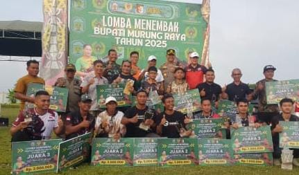 FORUMHUKUM.ID. Puruk Cahu – Lomba Menembak “Bupati Murung Raya” Tahun 2025 resmi ditutup oleh Bupati Murung Raya, Heriyus, S.E., pada Minggu sore (12/10/2025) di Stadion Willy M. Yoseph, Puruk Cahu. Kegiatan yang berlangsung selama tiga hari, sejak 10 hingga 12 Oktober 2025 ini, diikuti peserta dari berbagai daerah di Kalimantan Tengah dan berlangsung meriah.