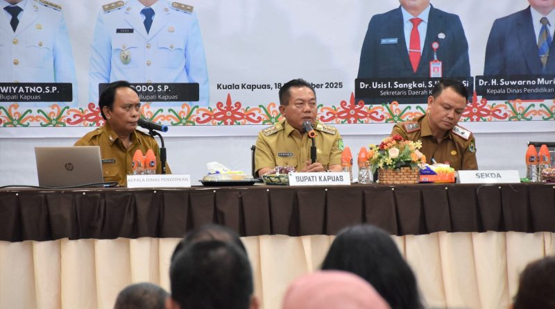 Forum Hukum. id– Kuala Kapuas, Dinas Pendidikan Kabupaten Kapuas menggelar Rapat Koordinasi Bidang Pendidikan dalam rangka evaluasi progres kinerja fisik dan nonfisik Tahun Anggaran 2025 serta penyusunan rencana kegiatan untuk Tahun Anggaran 2026. Kegiatan yang berlangsung di Aula Dinas Pendidikan Kapuas, Selasa (18/11/2025) tersebut dihadiri Bupati Kapuas HM Wiyatno didampingi Sekda Kapuas Usis I Sangkai dan Kepala Dinas Pendidikan Kapuas H Suwarno Muriyat.