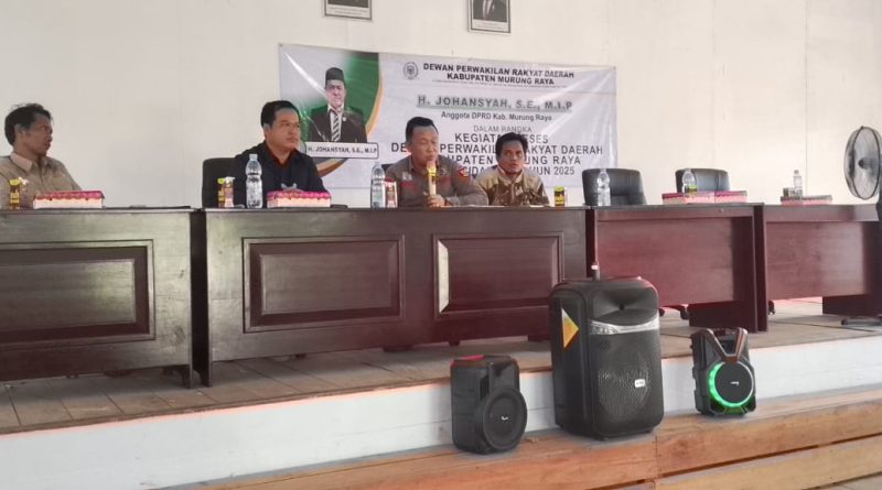 FORUMHUKUM.ID, Puruk Cahu –Reses merupakan bagian penting dari fungsi DPRD dalam menjaring masukan masyarakat sebagai bahan pertimbangan dalam penyusunan kebijakan pembangunan daerah. Anggota DPRD Kabupaten Murung Raya (Mura), Johansyah menggelar kegiatan Reses Masa Sidang III Tahun 2025 di Desa Sungai Bakanon, Kecamatan Permata Intan, Kamis (16/10/2025).